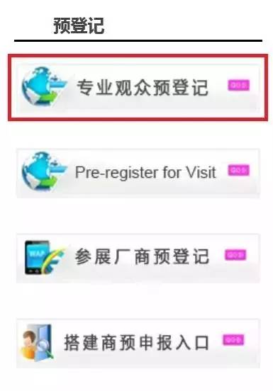 第一步:打开全国糖酒会官网(www.qgtjh.com),在首页左边可以看到以下菜单栏,点击红色标记部分“专业观众预登记”;